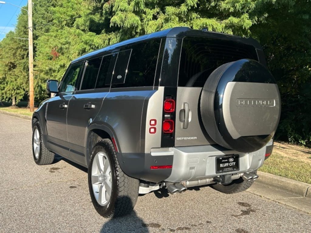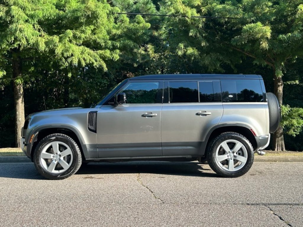 Recent Arrival! Clean CARFAX. CARFAX One-Owner. Certified. Silicon Silver Premium Metallic 2024 Defender 110 SE 4WD 8-Speed Automatic 5.0L V8 Land Rover Approved Certified Pre-Owned Certified, 11 Speakers, 12-Way Heated & Cooled Electric Memory Front Seats, 3.55 Axle Ratio, 4-Wheel Disc Brakes, ABS brakes, Adaptive suspension, Air Conditioning, Alloy wheels, AM/FM radio: SiriusXM, Apple CarPlay & Android Auto, Auto High-beam Headlights, Auto tilt-away steering wheel, Auto-dimming door mirrors, Auto-dimming Rear-View mirror, Automatic temperature control, Brake assist, Bumpers: body-color, Compass, Delay-off headlights, Driver door bin, Driver vanity mirror, Dual front impact airbags, Dual front side impact airbags, Electronic Stability Control, Exterior Parking Camera Rear, Four wheel independent suspension, Front anti-roll bar, Front Bucket Seats, Front Center Armrest, Front dual zone A/C, Front fog lights, Front reading lights, Fully automatic headlights, Garage door transmitter: HomeLink, Grained Leather Seat Trim, Heated door mirrors, Heated front seats, Heated steering wheel, Illuminated entry, Leather Shift Knob, Leather steering wheel, Low tire pressure warning, Memory seat, Navigation system: Connected Navigation PIVI Pro, Occupant sensing airbag, Outside temperature display, Overhead airbag, Overhead console, Panic alarm, Passenger door bin, Passenger vanity mirror, Power door mirrors, Power driver seat, Power moonroof, Power passenger seat, Power steering, Power windows, Radio data system, Radio: 400W 11 Speaker Meridian Sound System, Rain sensing wipers, Rear anti-roll bar, Rear fog lights, Rear reading lights, Rear seat center armrest, Rear window defroster, Rear window wiper, Remote keyless entry, Security system, Speed control, Speed-sensing steering, Speed-Sensitive Wipers, Split folding rear seat, Steering wheel memory, Steering wheel mounted audio controls, Tachometer, Telescoping steering wheel, Tilt steering wheel, Traction control, Trip computer, Variably intermittent wipers, Ventilated front seats, Weather band radio, Wheels: 20" Gloss Sparkle Silver Style 5098.