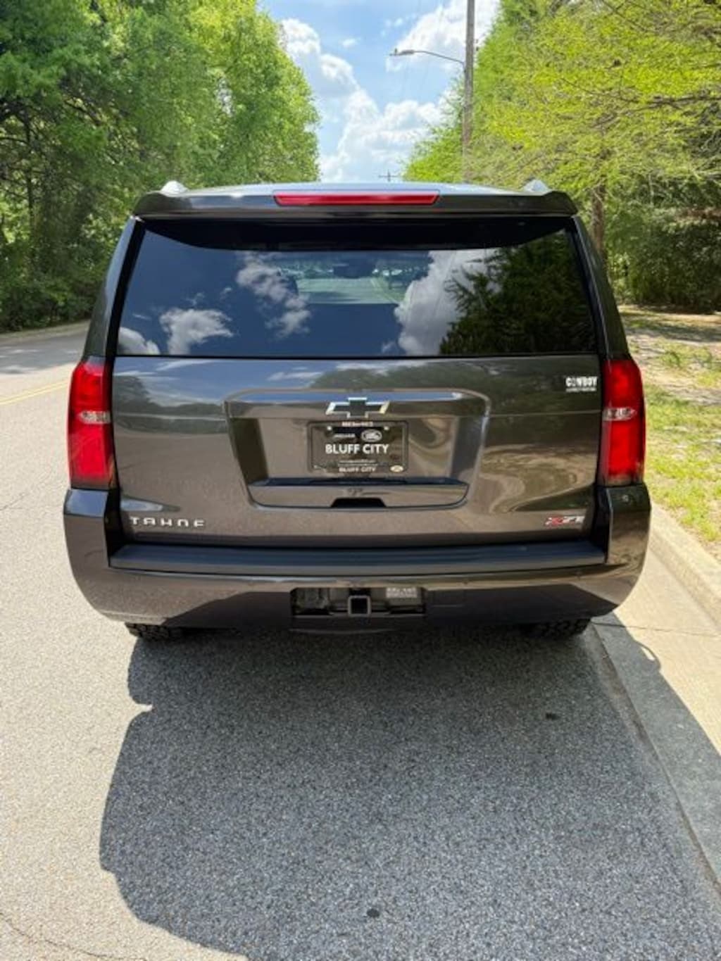 Recent Arrival! CARFAX One-Owner. Odometer is 59368 miles below market average! Tungsten Metallic 2018 Chevrolet Tahoe LT 4WD 6-Speed Automatic Electronic with Overdrive EcoTec3 5.3L V8 4WD, Jet Black Leather, 18" x 8.5" Aluminum Wheels, 1st & 2nd Row Color-Keyed Carpeted Floor Mats, 2 Front Frame-Mounted Black Recovery Hooks, 2nd Row 60/40 Split-Folding Manual Bench, 2nd Row Manual Bucket Seats, 3rd Row Manual 60/40 Split-Folding Fold Flat Bench, 3rd row seats: split-bench, 4-Wheel Antilock Disc Brakes w/Brake Assist, 4-Wheel Disc Brakes, 5 12-Volt Auxiliary Power Outlets, 9 Speakers, ABS brakes, Adjustable pedals, Air Conditioning, Alloy wheels, AM/FM radio: SiriusXM, Apple CarPlay/Android Auto, Auto High-beam Headlights, Auto-Dimming Inside Rear-View Mirror, Auto-dimming Rear-View mirror, Automatic temperature control, Black Assist Steps, Black Tubular Assist Steps, Bluetooth® For Phone, Bose Premium 9-Speaker System, Brake assist, Bumpers: body-color, Cargo Net, CD player, Color-Keyed Carpeting Floor Covering, Compass, Delay-off headlights, Driver door bin, Driver Inboard & Front Passenger Airbags, Driver vanity mirror, Dual front impact airbags, Dual front side impact airbags, Electronic Cruise Control w/Set & Resume Speed, Electronic Stability Control, Emergency communication system: OnStar Guidance, Enhanced Driver Alert Package (Y86), Extended-Range Remote Keyless Entry, Exterior Parking Camera Rear, Floor Console, Fog Lamps, Forward Collision Alert, Front & Rear Black Bowtie Emblems (LPO), Front & Rear Park Assist, Front anti-roll bar, Front Bucket Seats, Front Center Armrest, Front dual zone A/C, Front Heated Reclining Bucket Seats, Front Passenger 6-Way Power Seat Adjuster, Front reading lights, Front wheel independent suspension, Fully automatic headlights, Garage door transmitter, HD Radio, Heated door mirrors, Heated front seats, Hill Descent Control, Illuminated entry, IntelliBeam Headlamps, Lane Keep Assist w/Lane Departure Warning, Leather-Appointed Seat Trim, Leather-Wrapped Steering Wheel, Low Speed Forward Automatic Braking, Low tire pressure warning, Memory seat, Memory Settings, Occupant sensing airbag, Off-Road Z71 Suspension Package, OnStar Basic Plan For 5 Years, Outside temperature display, Overhead airbag, Overhead console, Panic alarm, Passenger door bin, Passenger vanity mirror, Pedal memory, Power door mirrors, Power driver seat, Power Liftgate, Power passenger seat, Power steering, Power Sunroof, Power windows, Power-Adjustable Accelerator & Brake Pedals, Preferred Equipment Group 1LT, Premium audio system: Chevrolet MyLink, Premium Smooth Ride Suspension Package, Radio: Chevrolet MyLink AM/FM Stereo, Radio: Chevrolet MyLink w/Nav/AM/FM Stereo, Rain sensing wipers, Rear air conditioning, Rear anti-roll bar, Rear Park Assist w/Audible Warning, Rear reading lights, Rear seat center armrest, Rear window defroster, Rear window wiper, Remote keyless entry, Remote Vehicle Start, Roof rack: rails only, Roof-Mounted Luggage Rack Side Rails, Security system, Single-Slot CD/MP3 Player, SiriusXM NavTraffic, SiriusXM Satellite Radio, Skid Plate Package, Speed control, Speed-sensing steering, Split folding rear seat, Spoiler, Steering wheel mounted audio controls, Tachometer, Telescoping steering wheel, Tilt steering wheel, Traction control, Trip computer, Universal Home Remote, Variably intermittent wipers, Voltmeter, Wheels: 18" x 8.5" Painted Aluminum, Z71-Specific Rubber Floor Mats w/Logo, 4WD, Jet Black Leather.