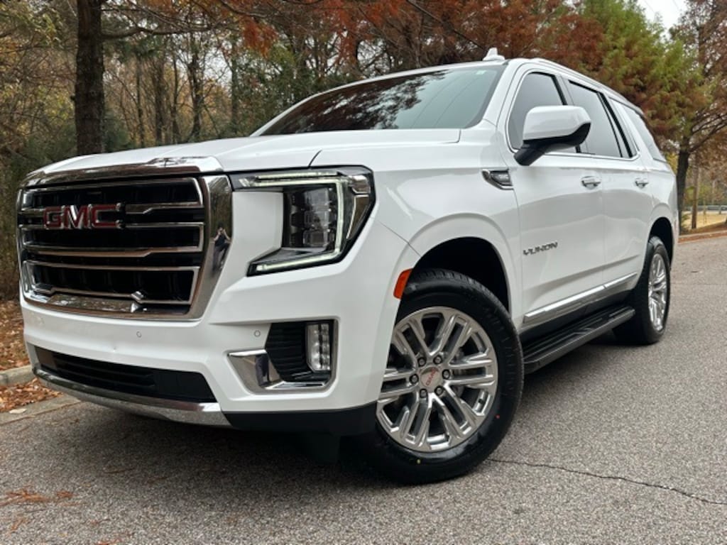 Priced below KBB Fair Purchase Price! Clean CARFAX. Odometer is 3951 miles below market average! Summit White 2023 GMC Yukon SLT 4WD 10-Speed Automatic with Overdrive EcoTec3 5.3L V8 4WD, 2 Presets For Power Driver Seat, 2nd Row Manual-Folding Bucket Seats, 3.23 Rear Axle Ratio, 3rd row seats: split-bench, 4-Wheel Disc Brakes, 9 Speakers, ABS brakes, Air Conditioning, Alloy wheels, AM/FM radio: SiriusXM with 360L, AM/FM Stereo, Apple CarPlay/Android Auto, Auto High-beam Headlights, Auto-dimming Rear-View mirror, Automatic Emergency Braking, Automatic temperature control, Bodyside moldings, Bose 9-Speaker Stereo Audio System Feature, Brake assist, Bright Chrome Bodyside Moldings, Bright Front & Rear Door Sill Plates, Bumpers: body-color, Chrome Door Handles w/Body-Color Strip, Compass, Delay-off headlights, Driver door bin, Driver vanity mirror, Dual front impact airbags, Dual front side impact airbags, Dual-Pane Panoramic Power Sunroof, Electronic Stability Control, Emergency communication system: OnStar and GMC connected services capable, Extra Capacity Cooling System, Following Distance Indicator, Forward Collision Alert, Four wheel independent suspension, Front & Rear Park Assist, Front anti-roll bar, Front Bucket Seats, Front Center Armrest, Front dual zone A/C, Front fog lights, Front Pedestrian Braking, Front reading lights, Fully automatic headlights, Garage door transmitter, Hands-Free Power Programmable Rear Liftgate, Heated & Ventilated Driver & Front Passenger Seats, Heated door mirrors, Heated Driver & Front Passenger Seats, Heated front seats, Hitch Guidance w/Hitch View, Illuminated entry, Inside Rear-View Auto-Dimming Mirror, Integrated Trailer Brake Controller, IntelliBeam Automatic High Beam On/Off, Lane Change Alert w/Side Blind Zone Alert, Lane Keep Assist w/Lane Departure Warning, Low tire pressure warning, Max Trailering Package, Memory seat, Navigation System, Not Equipped w/4-Way Driver & Fr Pass Pwr Lumbar, Not Equipped w/Wireless Charging, Occupant sensing airbag, Outside temperature display, Overhead airbag, Overhead console, Panic alarm, Passenger door bin, Passenger vanity mirror, Perforated Leather-Appointed Seating, Power door mirrors, Power driver seat, Power Liftgate, Power passenger seat, Power steering, Power windows, Preferred Equipment Group 4SA, Premium Smooth Ride Suspension, Rain sensing wipers, Rear air conditioning, Rear anti-roll bar, Rear Cross Traffic Alert, Rear reading lights, Rear seat center armrest, Rear window defroster, Rear window wiper, Remote keyless entry, Roof rack: rails only, Safety Alert Seat, Security system, SiriusXM w/360L, Smart Trailer Integration Indicator, Speed control, Speed-sensing steering, Split folding rear seat, Spoiler, Steering wheel mounted audio controls, Tachometer, Telescoping steering wheel, Tilt steering wheel, Traction control, Trailer Side Blind Zone Alert, Trip computer, Universal Home Remote, Variably intermittent wipers, Ventilated front seats, Voltmeter, Wheels: 20" x 9" 6-Spoke Polished Aluminum, Wireless Charging, 4WD.
