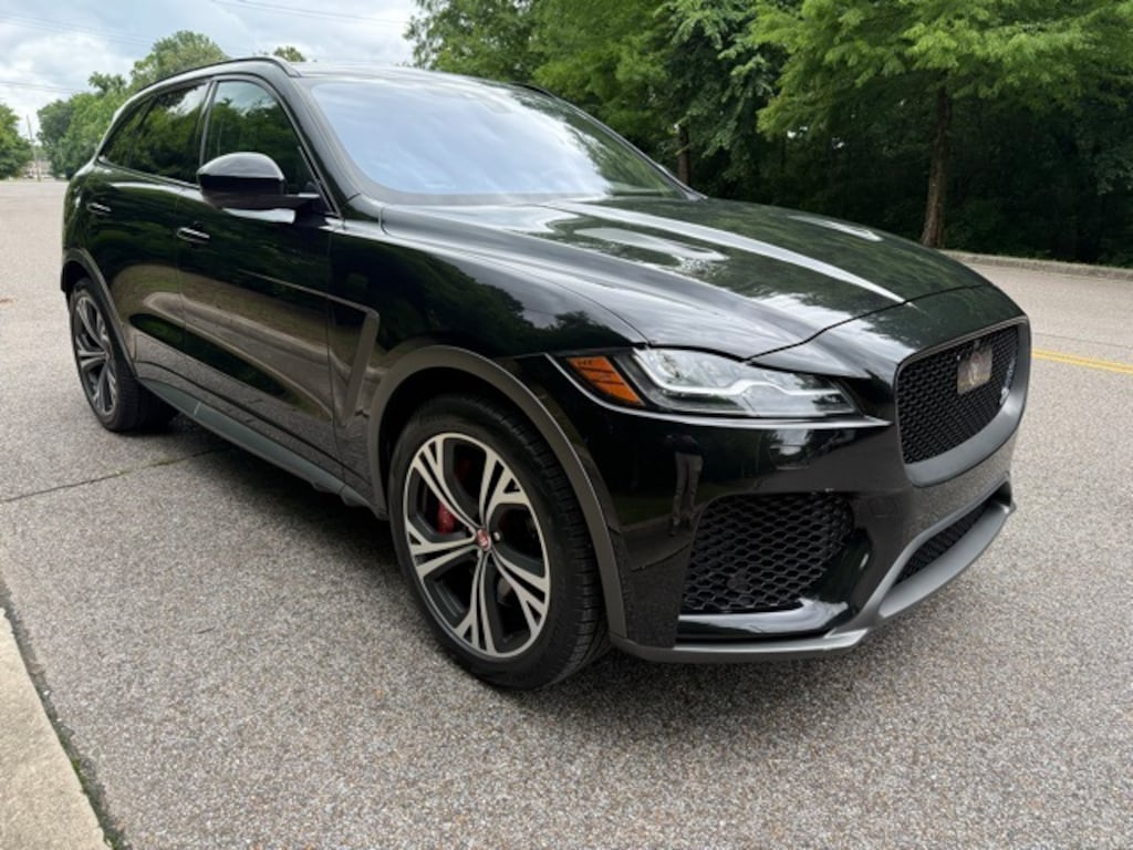 Clean CARFAX. CARFAX One-Owner. Odometer is 19929 miles below market average! Santorini Black Metallic 2020 Jaguar F-PACE SVR AWD 8-Speed Automatic 5.0L V8 11 Speakers, 2 12V Power Sockets in 2nd Row, 3.23 Axle Ratio, 360 Parking Aid, 4-Wheel Disc Brakes, ABS brakes, Adaptive suspension, Air Conditioning, Alloy wheels, AM/FM radio: SiriusXM, Apple CarPlay/Android Auto, Auto High-beam Headlights, Auto tilt-away steering wheel, Auto-dimming door mirrors, Auto-dimming Rear-View mirror, Automatic temperature control, Brake assist, Bumpers: body-color, Compass, Connect Pro Package, Delay-off headlights, Driver door bin, Driver vanity mirror, Dual front impact airbags, Dual front side impact airbags, Electronic Stability Control, Emergency communication system: InControl Protect, Exterior Parking Camera Rear, Four wheel independent suspension, Front anti-roll bar, Front Bucket Seats, Front Center Armrest, Front dual zone A/C, Front reading lights, Fully automatic headlights, Garage door transmitter: HomeLink, Headlight cleaning, Heated & Cooled Front Performance Seats, Heated door mirrors, Heated front seats, Heated rear seats, Heated steering wheel, Illuminated entry, InControl Apps, Leather Shift Knob, Leather steering wheel, Low tire pressure warning, Lozenge Quilted Windsor Leather Seat Trim, Memory seat, Navigation Pro, Navigation system: InControl Navigation Pro, Occupant sensing airbag, Outside temperature display, Overhead airbag, Overhead console, Panic alarm, Passenger door bin, Passenger vanity mirror, Power door mirrors, Power driver seat, Power Liftgate, Power moonroof, Power passenger seat, Power steering, Power windows, Pro Services & Wi-Fi Hotspot, Radio data system, Radio: Meridian 380W Sound System, Rain sensing wipers, Rear anti-roll bar, Rear fog lights, Rear reading lights, Rear seat center armrest, Rear window defroster, Rear window wiper, Remote keyless entry, Security system, SiriusXM Satellite Radio, Speed control, Speed-sensing steering, Split folding rear seat, Spoiler, Sport steering wheel, Steering wheel memory, Steering wheel mounted audio controls, Tachometer, Telescoping steering wheel, Tilt steering wheel, Traction control, Trip computer, Turn signal indicator mirrors, Variably intermittent wipers, Ventilated front seats, Wheels: 21" 5 Split-Spoke (Style 5080).