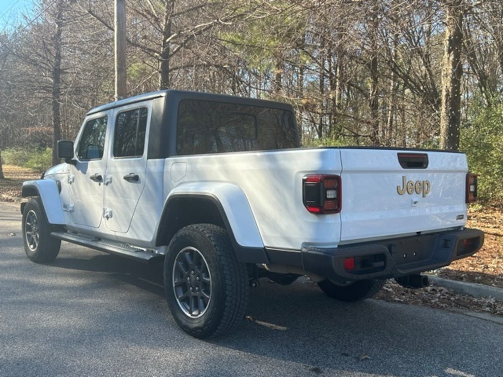 Recent Arrival! Clean CARFAX. Odometer is 15891 miles below market average! Bright White Clearcoat 2021 Jeep Gladiator Overland 4WD 8-Speed Automatic 3.6L V6 24V VVT 1-Year SiriusXM Guardian Trial, 110 mph Vehicle Max Speed Calibration, 240 Amp Alternator, 3.73 Rear Axle Ratio, 4-Wheel Disc Brakes, 400W Inverter, 5-Year SiriusXM Traffic Service, 5-Year SiriusXM Travel Link Service, 8 Speakers, 8.4" Radio & Premium Audio Group, 8.4" Touchscreen Display, ABS brakes, Advanced Brake Assist, Advanced Safety Group, Air Conditioning, Alloy wheels, Alpine Premium Audio System, AM/FM radio: SiriusXM, Apple CarPlay/Android Auto, Auto High Beam Headlamp Control, Auto-Dimming Rear-View Mirror, Automatic temperature control, Black 3-Piece Hard Top, Blind Spot & Cross Path Detection, Bluetooth Wireless Speaker, Brake assist, Class IV Hitch Receiver, Cold Weather Group, Compass, Daytime Running Lamps LED Accents, Delay-off headlights, Driver door bin, Driver vanity mirror, Dual front impact airbags, Dual front side impact airbags, Electronic Stability Control, Emergency/Assistance Call, For Details, Visit DriveUconnect.com, Freedom Panel Storage Bag, Front anti-roll bar, Front Bucket Seats, Front Center Armrest w/Storage, Front dual zone A/C, Front fog lights, Front LED Fog Lamps, Front License Plate Bracket, Front reading lights, Full Length Floor Console Premium Armrest, Full Speed Forward Collision Warning Plus, Fully automatic headlights, Garage door transmitter, GPS Navigation, HD Radio, Heated door mirrors, Heated Front Seats, Heated Steering Wheel, Heavy-Duty Engine Cooling, Illuminated entry, Integrated roll-over protection, Leather steering wheel, Leather Trimmed Bucket Seats, Leather Wrapped Park Brake Handle, Leather Wrapped Shift Knob, LED Lighting Group, LED Park Turn Lamps, LED Premium Reflector Headlamps, LED Taillamps, Low tire pressure warning, MOPAR American Flag Hood Decal, Mopar Black Tubular Side Steps, MOPAR Grab Handle Kit, MOPAR Hardtop Headliner, MOPAR Plastic Door Sill Guards, MOPAR Satin Black Grille, MOPAR Spray In Bedliner, Normal Duty Plus Suspension, Occupant sensing airbag, Off-Road Info Pages, Outside temperature display, Overland Cloth Bucket Seats, Panic alarm, ParkSense Rear Park Assist System, ParkView Rear Back-Up Camera, Passenger door bin, Passenger vanity mirror, Popular Equipment Package, Power door mirrors, Power steering, Power windows, Premium Door Trim Panel, Premium Wrapped I/P Bezel, Quick Order Package 23G, Quick Order Package 24G, Radio data system, Radio: Uconnect 4 w/7" Display, Radio: Uconnect 4C Nav w/8.4" Display, Rear anti-roll bar, Rear Armrest w/Cupholder Seat, Rear reading lights, Rear Sliding Window, Rear Window Defroster, Remote keyless entry, Remote Proximity Keyless Entry, Remote Start System, Safety Group, Security system, SiriusXM Traffic Plus, SiriusXM Travel Link, Speed control, Split folding rear seat, Steering wheel mounted audio controls, Tachometer, Telescoping steering wheel, Tilt steering wheel, Traction control, Trailer Hitch Zoom, Trailer Tow Package, Trip computer, Variably intermittent wipers, Voltmeter, Wheels: 18" x 7.5" Granite Crystal Aluminum.