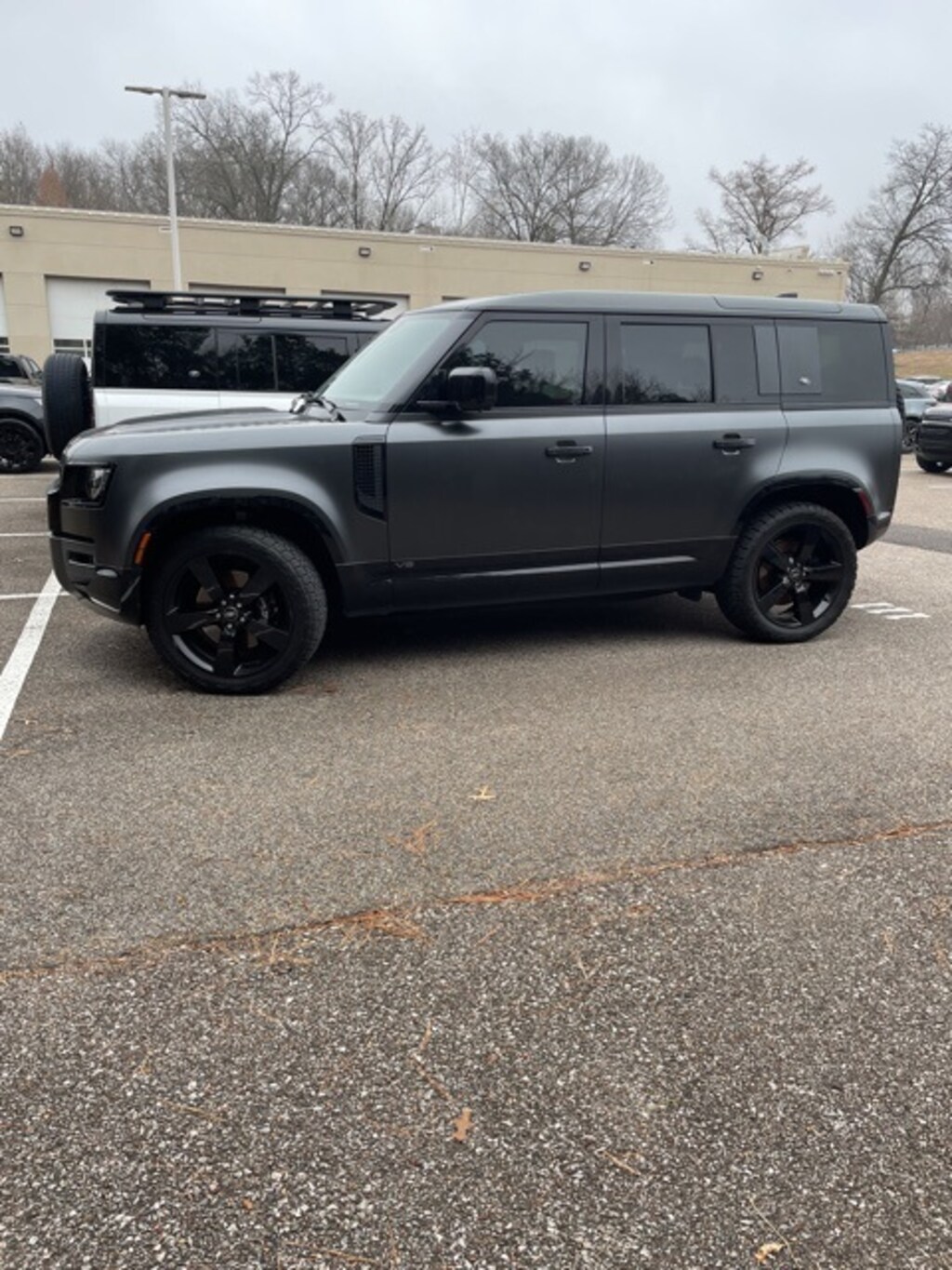 Recent Arrival! Clean CARFAX. Gray 2023 Land Rover Defender 110 4WD 8-Speed Automatic 5.0L V8 14-Way Heated & Cooled Electric Memory Seats, 15 Speakers, 3.55 Axle Ratio, 4-Wheel Disc Brakes, ABS brakes, Adaptive suspension, Air Conditioning, Alloy wheels, AM/FM radio: SiriusXM, Apple CarPlay & Android Auto, Auto High-beam Headlights, Auto tilt-away steering wheel, Auto-dimming door mirrors, Auto-dimming Rear-View mirror, Automatic temperature control, Brake assist, Bumpers: body-color, Compass, Delay-off headlights, Driver door bin, Driver vanity mirror, Dual front impact airbags, Dual front side impact airbags, Electronic Stability Control, Exterior Parking Camera Rear, Four wheel independent suspension, Front anti-roll bar, Front Bucket Seats, Front Center Armrest, Front dual zone A/C, Front fog lights, Front reading lights, Fully automatic headlights, Garage door transmitter: HomeLink, Headlight cleaning, Heads-Up Display, Heated door mirrors, Heated front seats, Heated rear seats, Heated steering wheel, Illuminated entry, Leather Shift Knob, Low tire pressure warning, Memory seat, Navigation system: Connected Navigation PIVI Pro, Occupant sensing airbag, Outside temperature display, Overhead airbag, Overhead console, Panic alarm, Passenger door bin, Passenger vanity mirror, Power door mirrors, Power driver seat, Power moonroof, Power passenger seat, Power steering, Power windows, Radio data system, Radio: 700W 15 Speaker Meridian Surround Sound Sys, Rain sensing wipers, Rear air conditioning, Rear anti-roll bar, Rear fog lights, Rear reading lights, Rear seat center armrest, Rear window defroster, Rear window wiper, Remote keyless entry, Security system, Speed control, Speed-sensing steering, Speed-Sensitive Wipers, Split folding rear seat, Steering wheel memory, Steering wheel mounted audio controls, Tachometer, Telescoping steering wheel, Tilt steering wheel, Traction control, Trip computer, Variably intermittent wipers, Ventilated front seats, Weather band radio, Wheels: 22" Gloss Black Finish Style 5098, Wheels: 22" Gloss Dark Grey Style 5098, Windsor Leather Seat Trim.